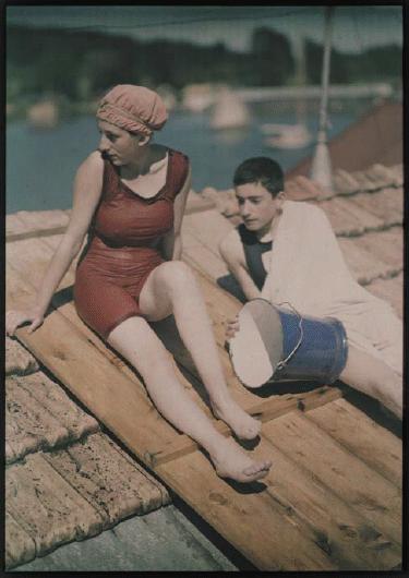 Lumière Autochrome. Photographer unknown. Bathers at Lake George. c. 1918. 6 3/4 x 4 3/4” (17.2 x 12 cm). The Museum of Modern Art, New York. Gift of Richard Benson.