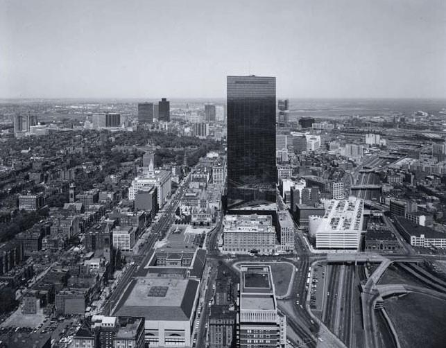 Gelatin silver print. Nicholas Nixon. View of the New John Hancock Building. 1975. 7 5/8 x 9 5/8" (19.4 x 24.4 cm). The Museum of Modern Art, New York. Gift of Richard Benson © Nicholas Nixon. A properly made contact print is virtually as sharp and tonally rich as the negative from which it is derived.