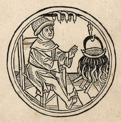 Woodcut. Artist unknown. February from German Calendar. c. 1484. 3 5/8 x 3 1/2" (9.2 x 8.9 cm). The Museum of Modern Art, New York. Gift of Richard Benson.