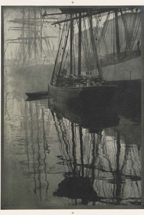 Halftone duotone print. Alvin Langdon Coburn. The Spider’s Web. c. 1905. 10 1/4 x 7" (26 x 17.8 cm). The Museum of Modern Art, New York. Gift of Richard Benson. An untrimmed proof sheet for a plate in Camera Work 21 (January 1908). This duotone shows the register marks at top and bottom that guided the printer in aligning the two impressions.