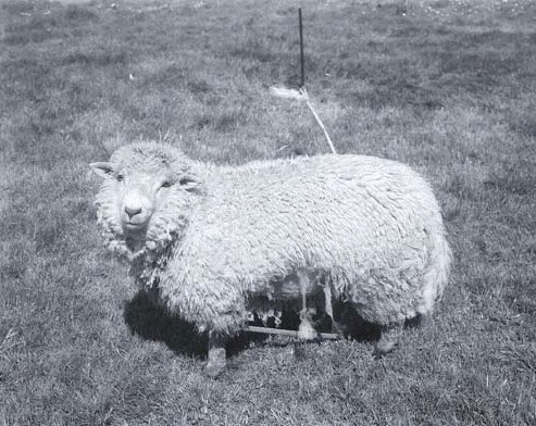 Dye sublimation print. Richard Benson. Tethered Sheep. 1995 (Printed 1998). 7 1/2 x 9 1/2" (19 x 24.1 cm). The Museum of Modern Art, New York. Gift of Richard Benson © Richard Benson. In the dye sublimation process, originally refined for military use, tiny heating elements transfer dyes to a paper support. This particular print was made using a single layer of black dye.