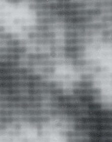 Detail of Dye sublimation print. Richard Benson. Tethered Sheep. 1995 (Printed 1998). 7 1/2 x 9 1/2" (19 x 24.1 cm). The Museum of Modern Art, New York. Gift of Richard Benson © Richard Benson. This twenty-five-times enlargement from the print shows the soft squares of tone generated from the black dye layer in this black and white print. Unlike a hard halftone or stochastic dot, these patches of dye have variable tonality, deriving from the modulated heat used to transfer the dye.