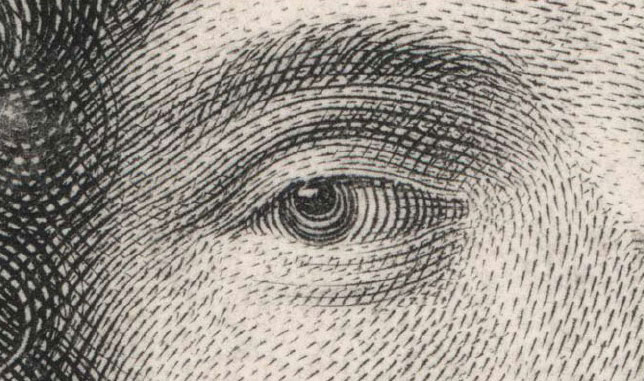 Detail of Copper engraving. Nicolas Bazin. Portrait de Monsieur Helyot Conseiller. 1686. 10 1/4 x 7 3/4" (26 x 19.7 cm). The Museum of Modern Art, New York. Gift of Richard Benson. The short strokes begin thin and then broaden as the burin enters the copper. In areas where they portray the desired tone inadequately, the engraver has added small marks between them.