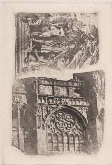 Photolyphic engraving, irreg. William Henry Fox Talbot. Untitled. c. 1852. 2 5/16 x 3 7/16” (5.9 x 8.8 cm). The Museum of Modern Art, New York. Gift of the International Museum of Photography at George Eastman House. Many early attempts were made to print photographs with ink. This small experimental print, which Talbot called a “photoglyptic engraving,” was an attempt to make an intaglio reproduction of a pair of calotypes.