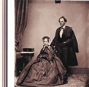 Photo offset lithography tritone. Mathew B. Brady Studio. A multiple-impression proof sheet for Photographs from the Collection of the Gilman Paper Company (White Oak Press, 1985), Senator and Mrs. James H. Lane. 1861–66. (Printed by Richard Benson and Thomas Palmer, 1985). 9 x 7 3/4" (22.8 x 19.7 cm). The Metropolitan Museum of Art. Gilman Collection, Purchase, Alfred Stieglitz Society Gifts. The images on the following pages illustrate a breakdown of the stages of the reproduction, with color bars still attached, showing the solid values of the inks used in the printing. This reproduction also uses a fourth plate, which prints an overall varnish but contains no picture data, so I still call it a tritone.