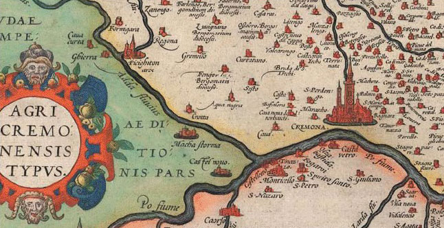 Detail of Hand-colored copper engraving. Antonius Campus. Map of the Fields of Cremona. 1579. 13 3/4 x 19 13/16" (35 x 50.3 cm). The Museum of Modern Art, New York. Gift of Richard Benson.