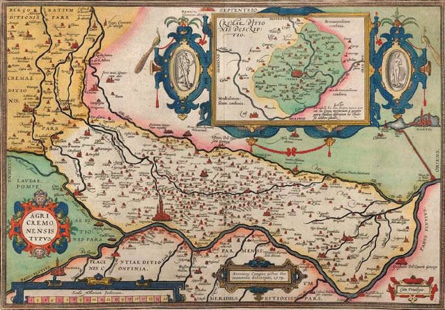 Hand-colored copper engraving. Antonius Campus. Map of the Fields of Cremona. 1579. 13 3/4 x 19 13/16" (35 x 50.3 cm). The Museum of Modern Art, New York. Gift of Richard Benson.