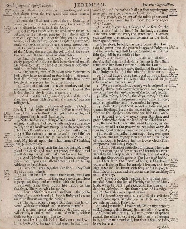 Letterpress from metal type. Mark and Charles Kerr, Edinburgh, printers. Holy Bible, page from Jeremiah 51. 1795. 9 11/16 x 8" (24.6 x 20.3 cm). The Museum of Modern Art, New York. Gift of Richard Benson.