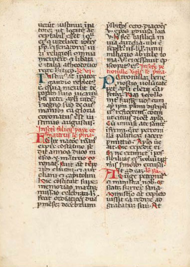 Hand lettering. Artist unknown. Page from a missal. c. 1350. 5 3/4 x 4 1/8" (14.6 x 10.5 cm) The Museum of Modern Art, New York. Gift of Richard Benson.