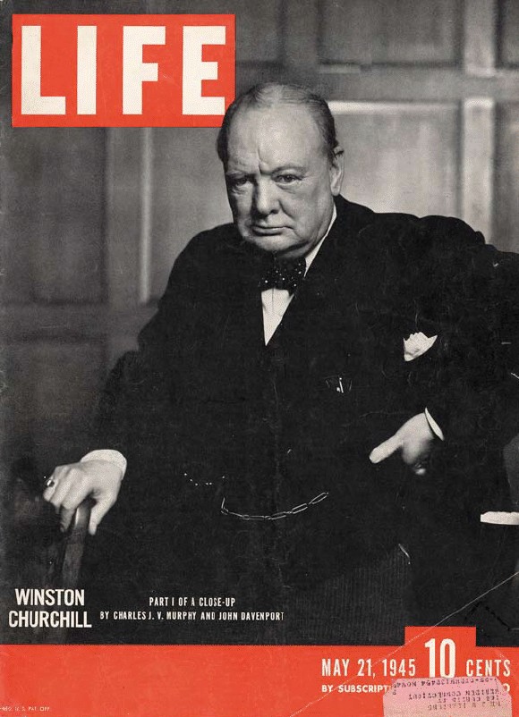 Halftone print. Yosuf Karsh. Winston Churchill. 1941 (Printed 1945). 10 1/2 x 14" (26.7 x 35.6 cm). The Museum of Modern Art, New York. Gift of Richard Benson © Time, Inc. The cover of Life magazine, May 21, 1945.