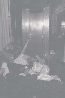 Detail of Photo offset lithography duotone. Tod Papageorge. New Year’s Eve at Studio 54. 1978. 13 1/16 x 8 3/4" (33.1 x 22.2 cm). The Museum of Modern Art, New York. © Tod Papageorge. The black impression, shown here by itself, is always printed first, because ink transfers best to an unprinted sheet and a superb transfer is required in order to hold a decent black value.