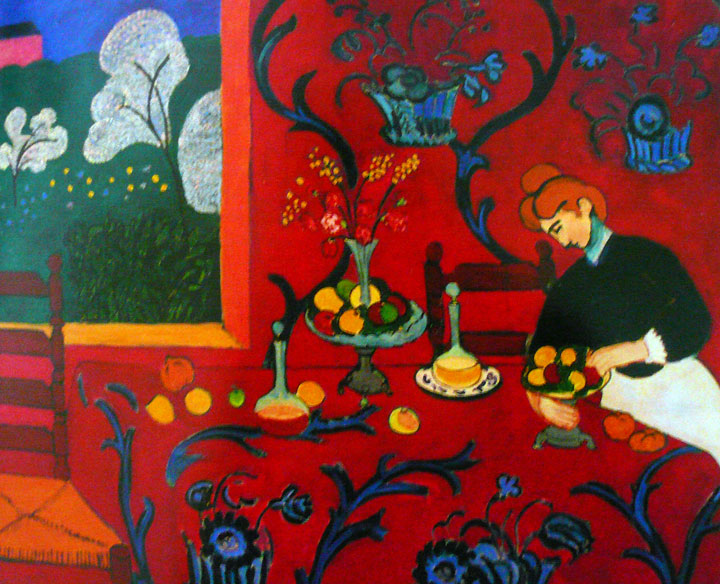 Oil on canvas. Henri Matisse. Red Room (Harmony in Red). 1908. 70 7/8 x 86 5/8" (180.5 x 221 cm). State Hermitage Museum, St. Petersburg ©Succession H. Matisse, Paris / Artists Rights Society (ARS), New York.