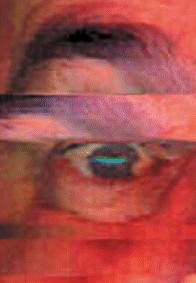 Detail of Digital scan. Allan Chasanoff. Self-portrait. c. 1990. 498 x 347 pixels © Allan Chasanoff. Since the earliest years of photography, light sources have shown up in miniature reflections in the eyes of the subjects of portraits. In this case the light we see is the long one traveling with the scanner bar. Here we see the evidence of a new, lensless imaging system.
