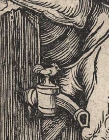 A detail enlarged about 1.2 times from the original print. Woodcut. Albrecht Dürer. The Men’s Bath. c. 1496. 15¼ x 11¼ in. (38.7 x 28.6 cm)