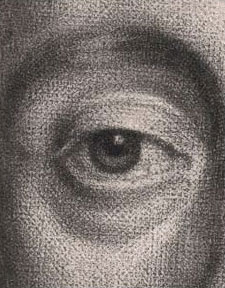 Detail of Mezzotint. After Sir Anthony Van Dyck. King Charles I. c. 1635 (Printed by Isaac Beckett, c. 1685). 13 1/8 x 9 13/16" (33.3 x 25 cm). Collection of John Benson. This four-times enlargement shows the somewhat mechanical marks of the rocker. The burnishing that makes the picture does not create new marks but simply lightens those already on the surface. Much effort went into rocking the plate in such a way that the marks left as little pattern as possible.