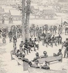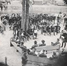 Wood engraving. Timothy O’Sullivan. General Grant with Staff at Bethesda Church from The Century magazine, vol. XXXIV, May 21, 1864. 1864. 5 5/8 x 5 1/4" (14.3 x 13.3 cm). Printed by Isaac Walton Taber. The Museum of Modern Art, New York. Gift of Richard Benson.