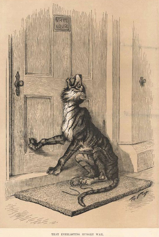 Letterpress from wood engraving. Thomas Nast. That Everlasting Hungry Wail from Harper’s Weekly. October 10, 1885. 14 3/16 x 9 9/16" (36 x 24.3 cm). The Museum of Modern Art, New York. Gift of Richard Benson.